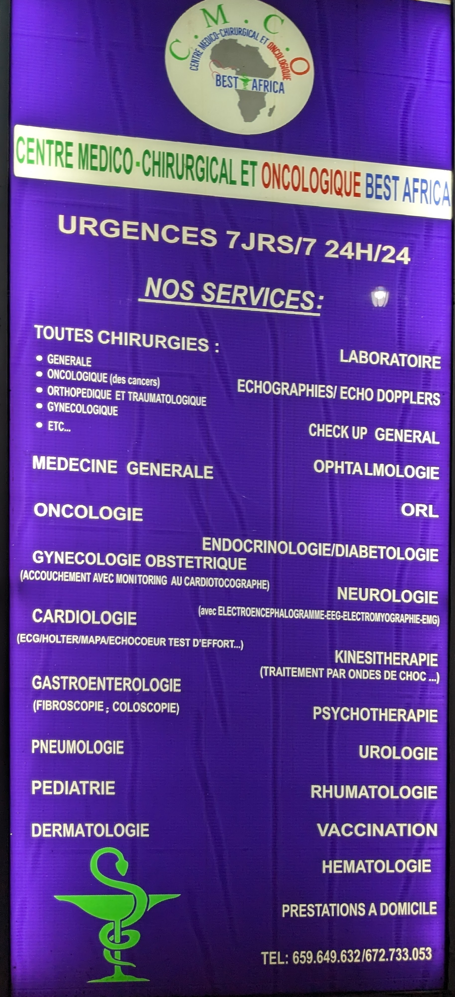 Situé à côté de l’IUC au quartier LOGBESSOU de DOUALA au CAMEROUN. L'Hôpital Best AFRICA est un établissement de recours et de proximité alliant une expertise forte autour de prises en charge reconnues sur plusieurs secteurs...